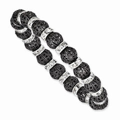 Black-plated & Silver-tone Clear Epoxy Stones Stretch Bracelet