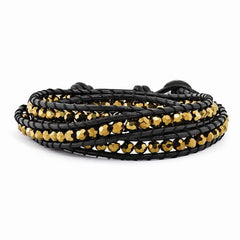 Golden Crystals Multi Wrap Brown Leather Bracelet