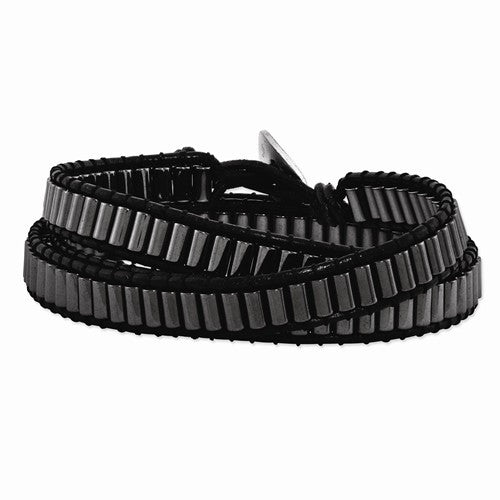 Hematite Beaded and Leather Multi-Wrap Bracelet