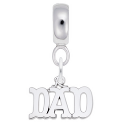 Protected by our Lifetime Warranty!Is your father a great paternal figure. Remind him of his status to you with this Sterling Silver 2D dad charm dangle bead! Add it to a collection now!Rounded Charmdrop Hole Size Diameter: 4.6 MMCharm Height: 3/8 in. ~ (10.64 mm)Charm Width: 7/8 in. ~ (21.07 mm)Sterling Silver Charm Dangle Beads for Bracelets & NecklacesFits most...