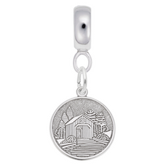 Protected by our Lifetime Warranty!See a local landmark covered bridge? Preserve it with this Sterling Silver engravable flat back covered bridge charm dangle bead! Add it to your collection today.Rounded Charmdrop Hole Size Diameter: 4.6 MMCharm Height: 3/4 in. ~ (18.09 mm)Charm Width: 3/4 in. ~ (18.09 mm)Sterling Silver Charm Dangle Beads for Bracelets & NecklacesFits most Bead European Bracelets...