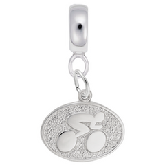 Protected by our Lifetime Warranty!Show your love for riding on two wheels! This Sterling Silver engravable cyclist charm dangle bead is great for the avid cyclist! Add it to a collection now!Rounded Charmdrop Hole Size Diameter: 4.6 MMCharm Height: 1/2 in. ~ (13.43 mm)Charm Width: 3/4 in. ~ (19.32 mm)Sterling Silver Charm Dangle Beads for Bracelets & NecklacesFits most Bead...
