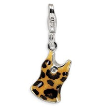 If you love leopard print, then perhaps this Sterling Silver CZ Black/Yellow Enameled Overall Charm is what you need. An you imagine how dull your charm bracelet would look without this charm?Size: 16.5 mm long x 11 mm wideMetal: Sterling SilverRhodium PlatedProfile Type: 3-DStone: Cubic Zirconia (CZ)Finish: Polished, 3-D, Enamel, Rhodium-platedFree U.S. Shipping for orders over $50 Protected by our...