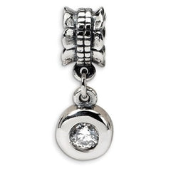 Protected by our 30 Day Money Back Guarantee!Size: 6.3 mm long x 4.9 mm wide Metal: Sterling SilverBead opening Diameter: 4.5 mmStone Type: Cubic Zirconia (CZ)Stone Creation Method: SyntheticManufacturing Process: CastedSolidFits Pandora,Biagi,Chamilia & European Bracelets Free U.S. Shipping for orders over $50