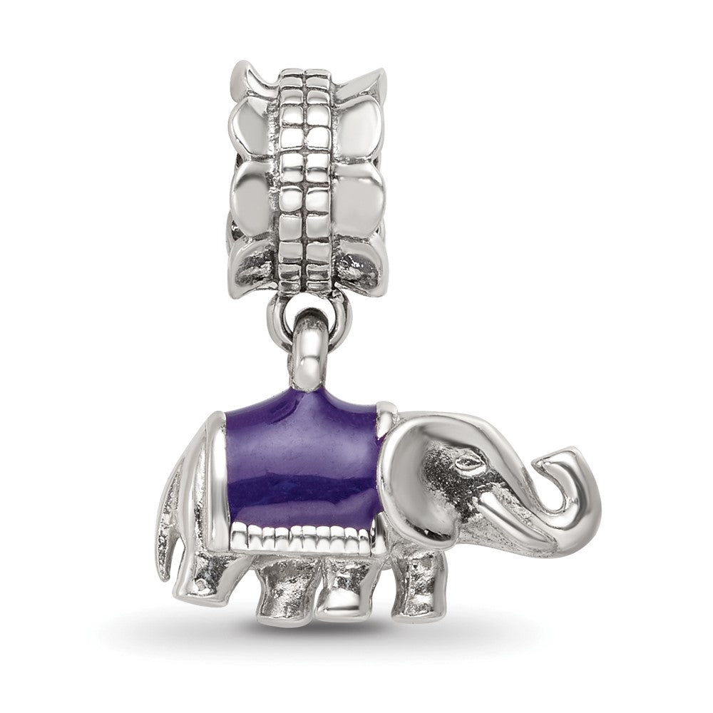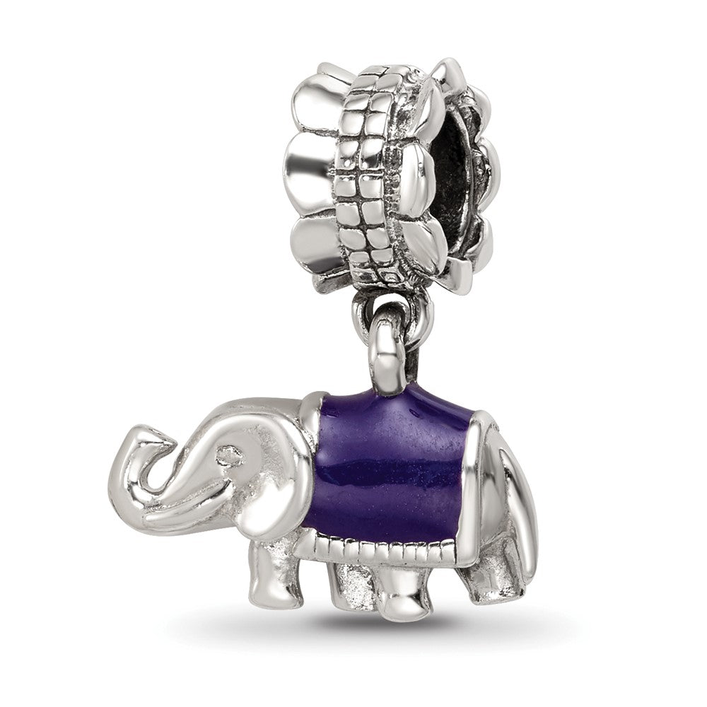 Enamel Elephant Charm Dangle Bead in Sterling Silver