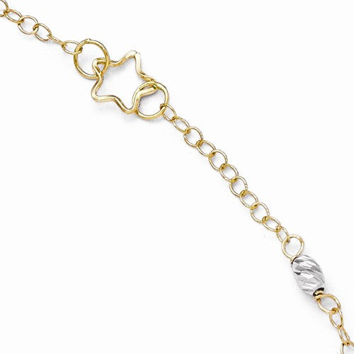 14K White and Yellow Gold Polished & Diamond-Cut Anklet