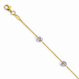14K White Gold Diamond-Cut Ball + Bar Pendant Chain Anklet