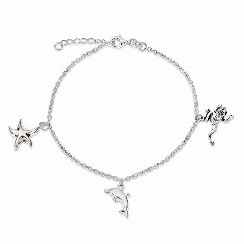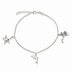 Sterling Silver Antiqued & Polished Animal Charm Bracelet
