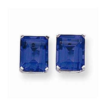 14k White Gold 10x8mm Emerald Cut Tanvorite Earring