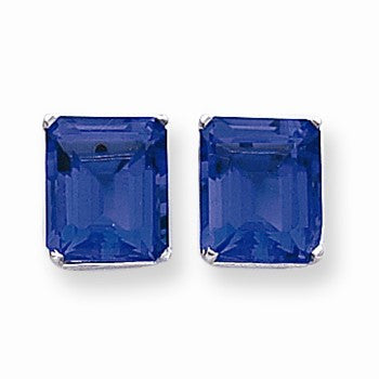 14k White Gold 12x10mm Emerald Cut Tanvorite Earring
