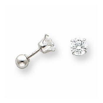 14k White Gold 5mm CZ and 4mm Ball Reversible Earrings