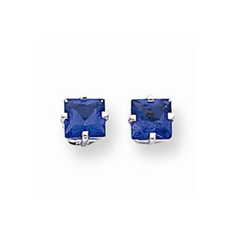 14k White Gold 5mm Princess Cut Tanvorite Earring