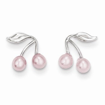 14k White Gold Pink Cultured Pearl with Leaf Earrings