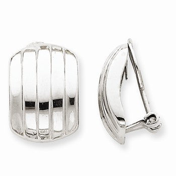 14k White Gold Polished Ribbed Non-pierced Omega Back Earrings