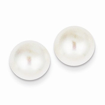 14k Yellow Gold 10-11mm White Button Freshwater Cultured Pearl Stud Earrings