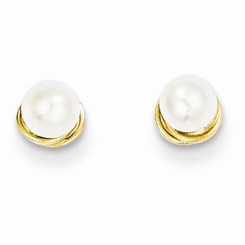 14k Yellow Gold 3mm Freshwater Cultured Pearl Love Knot Post Earrings