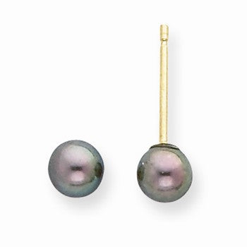 14k Yellow Gold 4-4.5mm Black Freshwater Cultured Pearl Stud Earrings