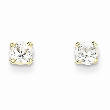 14k Yellow Gold 4mm April/White Zircon Post Earrings