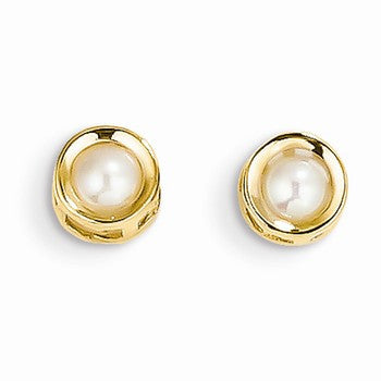 14k Yellow Gold 4mm Bezel June/Cultured Pearl Post Earrings