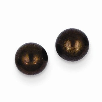 14k Yellow Gold 5-6mm Black Button Freshwater Cultured Pearl Stud Earrings