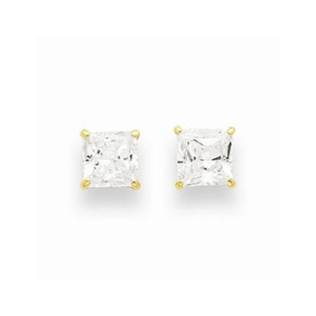 14k Yellow Gold 5mm Square CZ Post Earrings