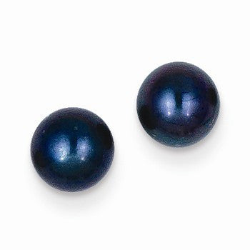 14k Yellow Gold 6-7mm Black Round Freshwater Cultured Pearl Stud Earrings