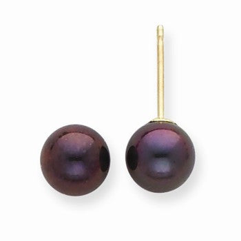 14k Yellow Gold 6-7mm Black Saltwater Akoya Cultured Pearl Stud Earrings