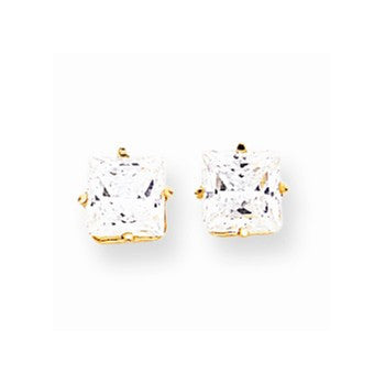 14k Yellow Gold 6mm Princess Cut Cubic Zirconia Earrings