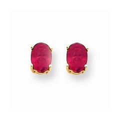 14k Yellow Gold 6x4mm Oval Created Ruby Earring