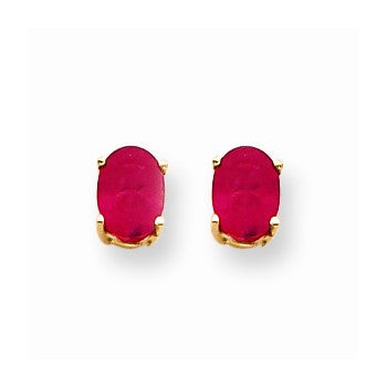 14k Yellow Gold 7x5mm Oval Created Ruby Earring