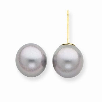 14k Yellow Gold 8-8.5mm Grey Saltwater Akoya Cultured Pearl Stud Earrings