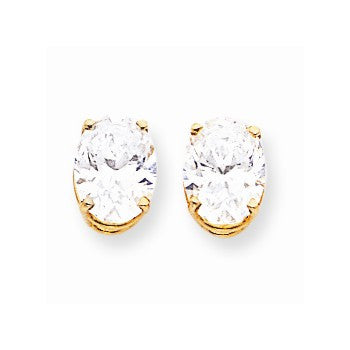 14k Yellow Gold 9x7mm Oval Cubic Zirconia Earrings