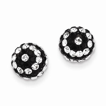 14k Yellow Gold Crystal Black and White Stripe 8mm Post Earrings