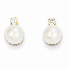 14k Yellow Gold Cultured Pearl CZ Earrings