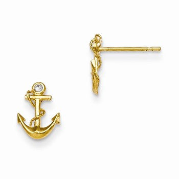 14k Yellow Gold CZ Childrens Anchor Post Earrings