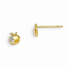 14k Yellow Gold CZ Childrens Apple Post Earrings