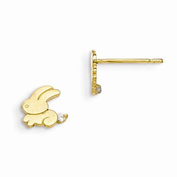 14k Yellow Gold CZ Childrens Bunny Post Earrings
