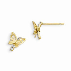 14k Yellow Gold CZ Childrens Butterfly Post Earrings