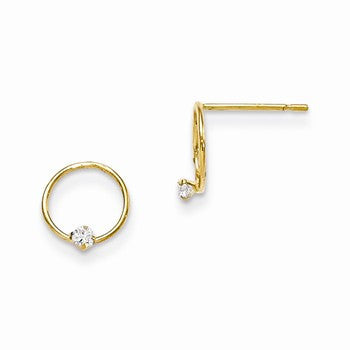 14k Yellow Gold CZ Childrens Circle Post Earrings