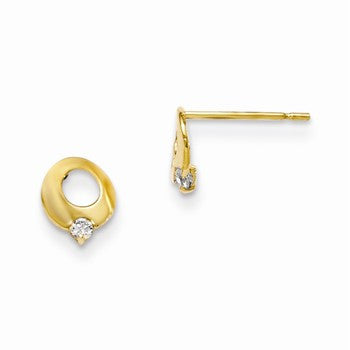 14k Yellow Gold CZ Childrens Circle Post Earrings