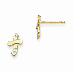 14k Yellow Gold CZ Childrens Cross Post Earrings
