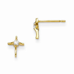 14k Yellow Gold CZ Childrens Cross Post Earrings