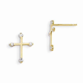 14k Yellow Gold CZ Childrens Cross Post Earrings