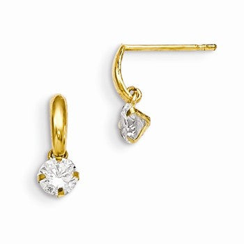 14k Yellow Gold CZ Childrens Dangle Post Earrings