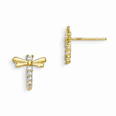 14k Yellow Gold CZ Childrens Dragonfly Post Earrings