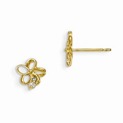 14k Yellow Gold CZ Childrens Flower Post Earrings