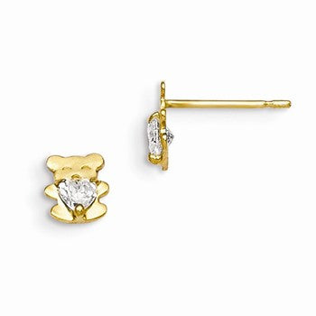 14k Yellow Gold CZ Childrens Teddy Bear Post Earrings