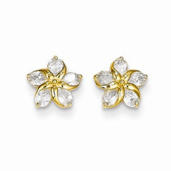 14k Yellow Gold CZ Flower Post Earrings