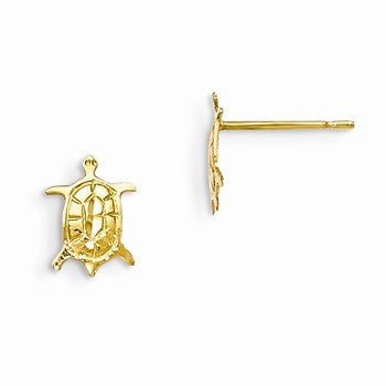 14k Yellow Gold Diamond-cut Childrens Turtle Post Earrings