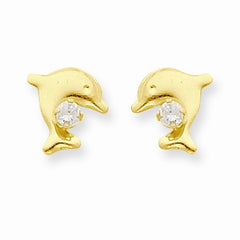 14k Yellow Gold Dolphin w/CZ Post Earrings